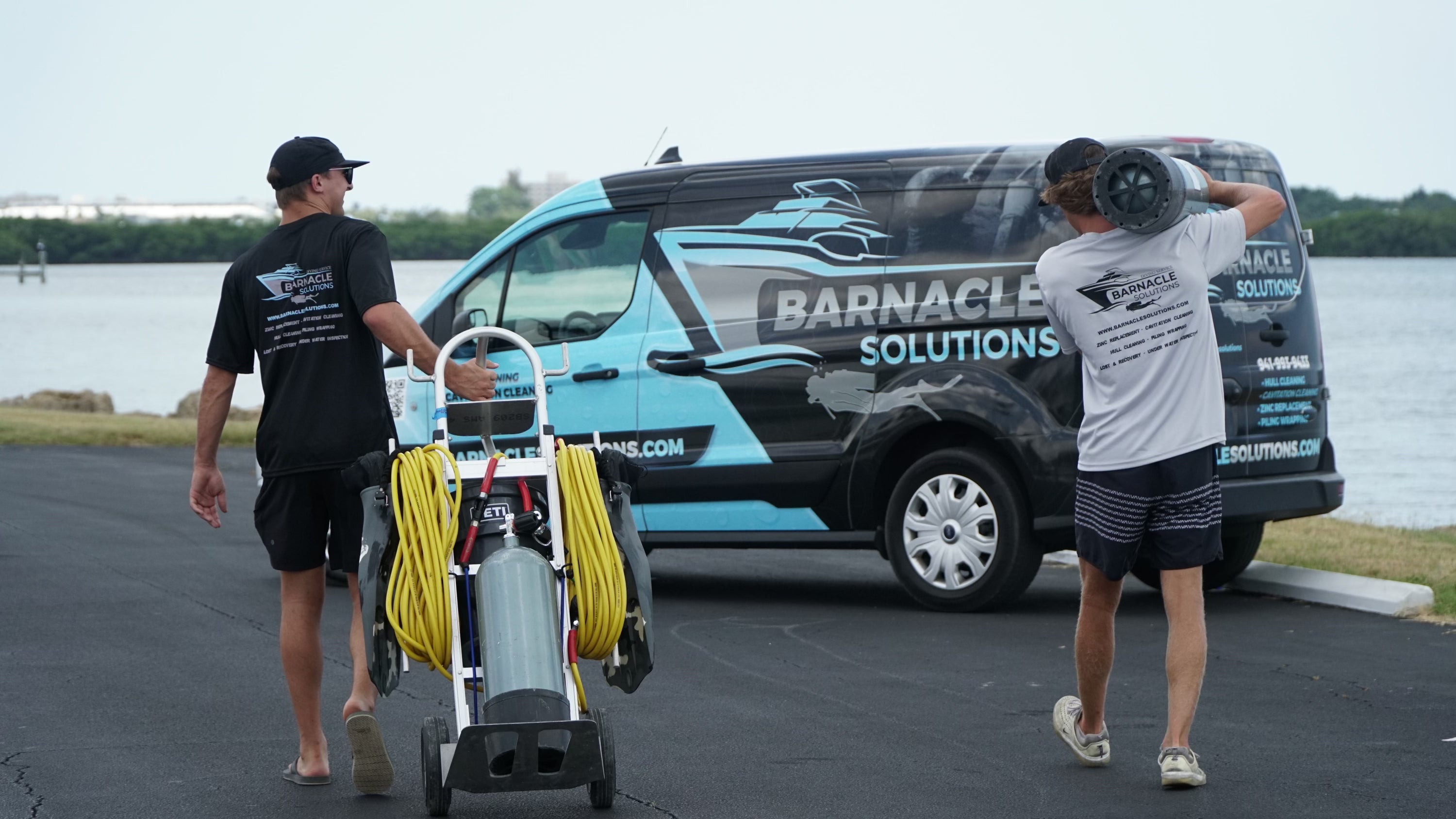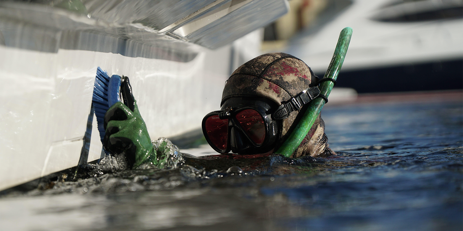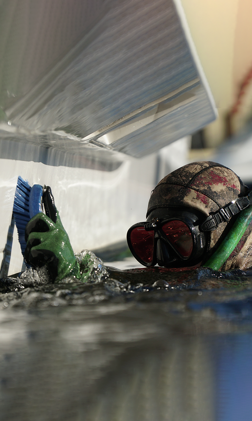 Regular Cleaning Will Ensure Your Boat's Maximum Efficiency. This Process contains removing marine growth, such as barnacles, algae, and other organisms, from the hull of a boat or yacht. Marine growth can accumulate on the hull over time, causing drag and reducing fuel efficiency. Our experienced divers use specialized equipment to make sure your hull is spotless from the waterline down to the keel!